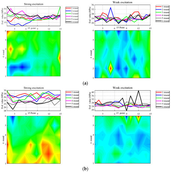 Curve of average Evd under different rounds of compaction. (a) Strong excitation. (b) Weak excitation.