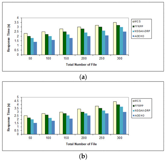 Response time of data file. (a) Size of data replication = 320 MB. (b) Size of data replication = 320 MB.