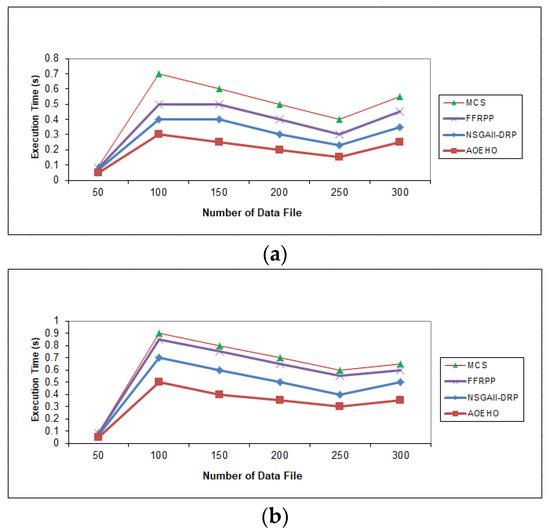 Execution time of data file. (a) Size of data replication = 64 MB. (b) Size of data replication = 320 MB.