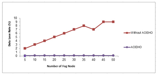Figure 15 shows the data loss rate across nodes in cloud computing. The data transfer rate across 50 nodes reaches a loss rate of 0 in the proposed system. The proposed strategy outperformed other strategies in reducing the data loss rate.