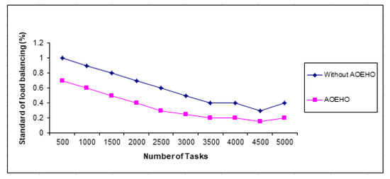 Figure 16 shows load balancing in different geographic locations decreases with the size of different files in nodes across cloud computing. Five thousand tasks were performed on a data set of different sizes to evaluate the efficiency of load balancing across nodes and the capacity and width of different files across nodes with bandwidth reduction. The proposed strategy outperformed other strategies in reducing load balancing and bandwidth.