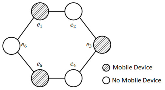 We simulated a collaborative cloud-side end MEC system, which consisted of multiple BSs and multiple MDs. Figure 4 shows the topology diagram of MEC servers. In the simulation system, the number of MEC servers was set to six. The shaded circles indicate that there are MDs within the range of the BSs, and the blank circles indicate that there are no MDs within the range of the BSs. The number of MDs in each BS was set to five. In the training process of agents, the maximum episodes and the maximum steps of each episode were set to 200.