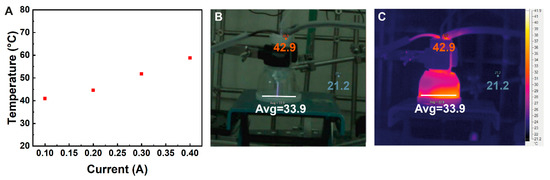 (A) Plasma jet contact point temperature on a glass surface as a function of plasma generator current (B) plasma jet contact with the surface and (C) the resulting average temperature at the surface as measured by a thermal imager.