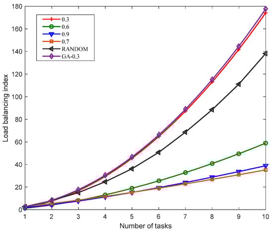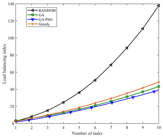 Figure 5. Comparison of the load-balancing indexes of different algorithms.