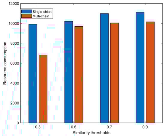 Figure 10. Comparison of the single-chain and multi-chain resource consumption with different similarity thresholds.