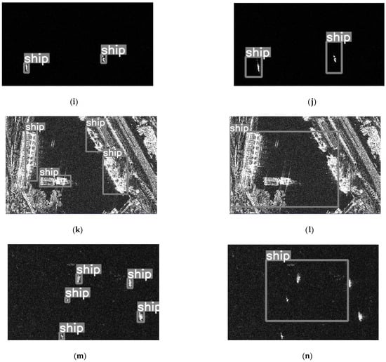 SAR ship data are extremely scarce because they are difficult to collect and interpret. For the public data set used in [30,31,32,33,34], the data scale is far smaller than that of the current popular deep learning data set. There are many data differences: the sizes of the images are different, the polarization methods are different, and the difference in the resolutions is large. In this article, SSDD [35,36,37,38,39,40,41] data sets with complete scenes and many data samples are used as the experimental data sets. In the following experiments, to control the variables and exclude the interference factors that affect the results, we choose to compare the algorithms on the same data set.
