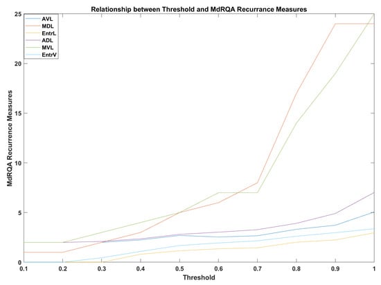 Relationship between threshold and MdRQA recurrence measures for mRR.