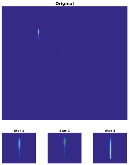 The probability of detecting a star with mv less than 4 is very low (less than 1%) unless we point directly at it. As a consequence, we simulated an image containing three stars’ spectra—one for the class mv from 4 to 7, and two for the class mv from 7 to 11.