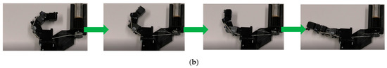 (3) Testing the adaptability of the mechanism: Blocking the DIP joint did not prevent the PIP and MCP joints from flexing (Figure 11). The latter reached 62 ± 4° and 79 ± 4° of flexion, respectively, while the DIP joint was blocked at 17 ± 7°.