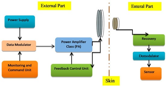 | [34] | Implements Class-E amplifier for transferring data to medical implants. | Includes frequency-shift keying as a data modulation scheme. | Meeting the requirements of a power transfer efficiency of 25% and a power delivered to the load of 126 mW. |