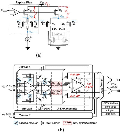 - Lyu, L.; Ye, D.; Shi, C.J.R. A 340 nW/Channel 110 dB PSRR Neural Recording Analog Front-End Using Replica-Biasing LNA, Level-Shifter Assisted PGA, and Averaged LFP Servo Loop in 65 nm CMOS. IEEE Trans. Biomed. Circuits Syst. 2020, 14, 811–824. [Google Scholar] [CrossRef]