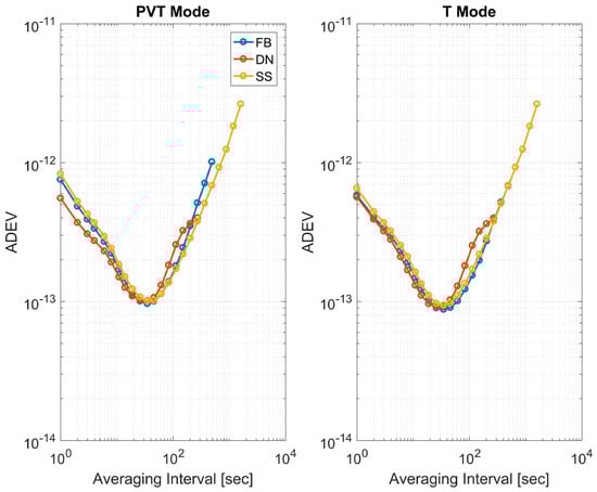 - Allan, D. Statistics of atomic frequency standards. Proc. IEEE 1966, 54, 221–230. [Google Scholar] [CrossRef]