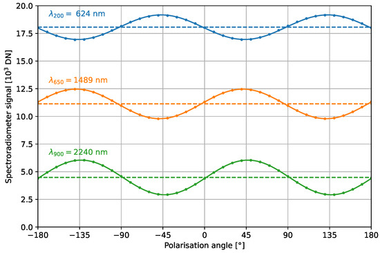 The polarization sensitivity is determined by fitting the spectroradiometer signal as a function of the polarization angle . Following Malus’ law, the signal can be described via [13]: