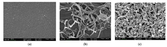 SEM characterization of the electrodes’ morphology is performed (Figure 4).