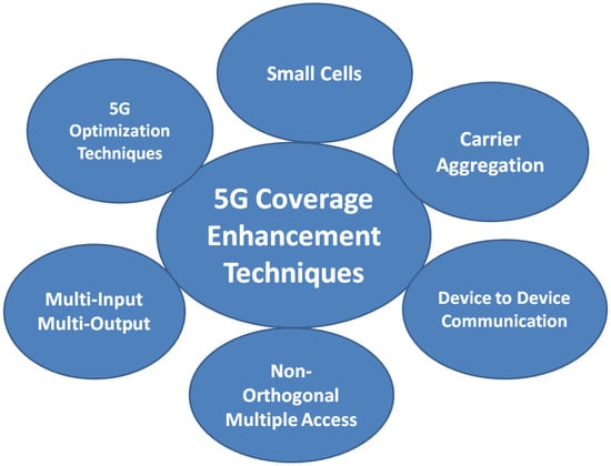 - The coverage enhancement techniques such as small cells, carrier aggregation, device to device communication, non-orthogonal multiple access, multiple input and multiple output, and optimization approaches are discussed;