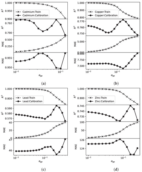 Bias-variance trade off. (a): Cademium; (b): Copper; (c): lead; (d): Zinc.