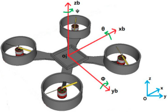 where , respectively, represent the roll angle, pitch angle, and yaw angle of the quadrotor.