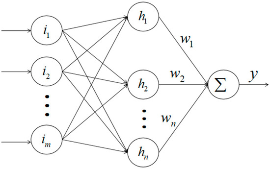 RBFNN is a very effective tool for the accurate estimation of unknown interference. In 1988, Broomhead and Lowe introduced RBF into neural network design based on the local response of biological neurons. In 1989, Jackson demonstrated the uniform approximation performance of the RBF neural network for nonlinear continuous functions. RBFNN is a very effective tool for the accurate estimation of unknown interference. The literature [20] compares the performances of the RBF neural network and the BP neural network in approximating nonlinear functions, and the research shows that the generalization ability of the RBF neural network is superior to the BP neural network in all aspects. In this paper, RBFNN will be used for the adaptive estimation of unknown interference from the axis of the ith quadrotor. Its network structure is shown in Figure 2: