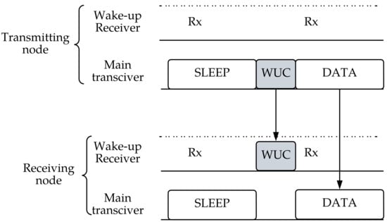 The revolutionary invention in the world of sensor nodes is WuRx, which is an ultra-low-power receiver included in addition to the main transceiver as a solution for the idle listening issue. The WuRx ship is always in receiving mode, plays the role of detecting the wake-up call (WUC), identifying it, and then sending an interrupt to the main transceiver through the microcontroller unit (MCU), which remains in sleep mode until receiving the interrupt from the MCU.