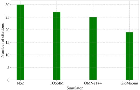 Figure 4 shows that the most-cited simulators are network simulator 2 (NS2),tiny OS simulator (TOSSIM), and OMNeT++ discrete event simulators.