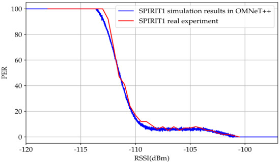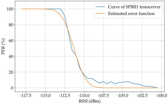 Figure 13 shows the estimated modeling function for the PER in the SPIRIT1 transceiver according to the RSSI. The calculation result showed a