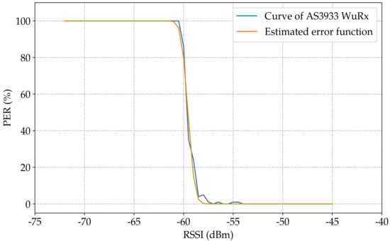 Figure 14 shows the estimated modeling function for the PER in AS3933 WuRx according to the RSSI. The calculation result showed a