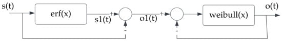 Where is the original signal; is the signal after applying the error function and obtaining the sensitivity and the transition interval; is the residual output from the original signal; is the output signal with the noise distribution.