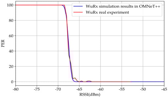 The WuRx energy efficiency has switched investigations to the reliability of those receivers, because data-transferring performance relies on communication accuracy, which could be affected by external factors such as noise, interference, etc. One of the accurate methods used to determine the reliability of WuRx communication is to measure the PER according to the transmission power or the attenuation level, because this metric gives an overall idea about the sensitivity level of the sensor node [