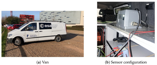Three tests were conducted in this study using a test train and a test van at Nottingham Geospatial Institute (NGI), as shown in Figure 1 and Figure 2.