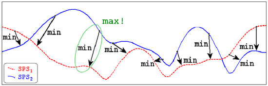 Aspert et al. [30] have proposed several metrics for shape distance, of which the Hausdorff distance is the best known. The Hausdorff distance measures the largest distance between two shapes. If we have two shapes (contours) C and D, we first determine the minimum distance between each point c on contour C and all points s on contour D, is distance between points, see Equation (4).