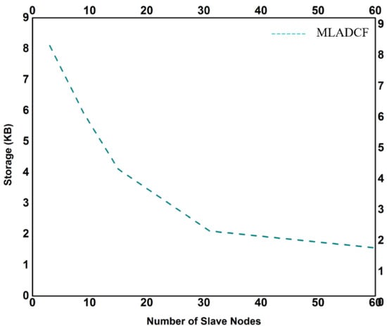 Let is the storage occupied in an IoT node after the round. It can be calculated by the following equation.