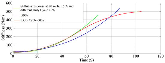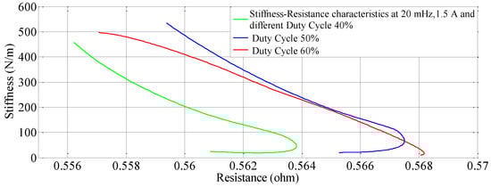 Duty Cycle (%)Resistance (Ω)Stiffness (N/m)Number of Cycles