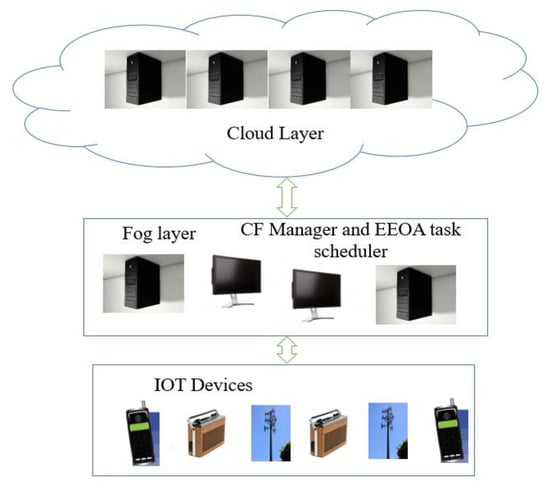 Depending on the request made at the time of processing, data can transfer from fog to cloud as well as from cloud to fog. The fog layer has a task scheduler and a cloud fog manager (CFmanager), which collects all the resources and tasks. The job is transferred after the task-scheduling strategy decides whether it will be carried out in the cloud node or the fog. The task’s execution result is returned to the CF manager. All of the results are combined by the CF manager before being sent to the IOT systems. To create an effective job execution schedule, the proposed task-scheduling algorithm is installed in CFmanager.