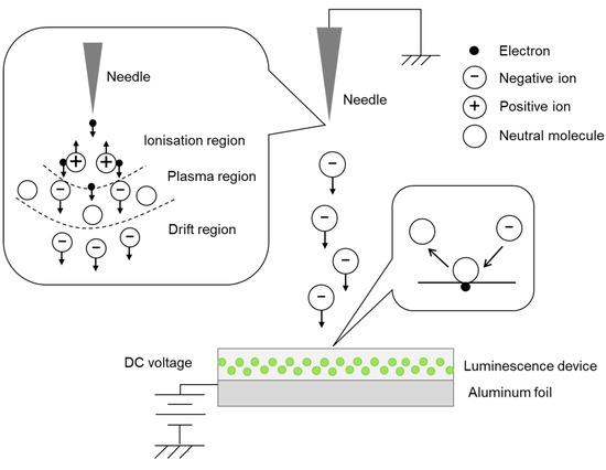- Wang, C.; Chen, X.; Ouyang, J.; Li, T.; Fu, J. Pulse Current of Multi-Needle Negative Corona Discharge and Its Electromagnetic Radiation Characteristics. Energies 2018, 11, 3120. [Google Scholar] [CrossRef]