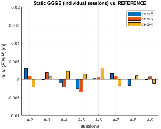 Coordinates’ differences between individual GGGB static sessions and the REFERENCE.