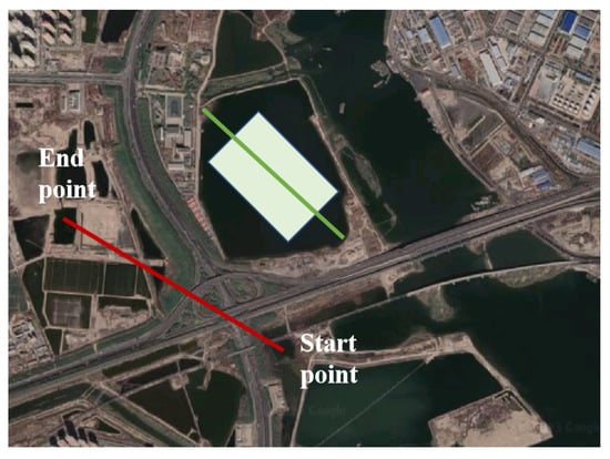 In order to ensure that the imaging center area covered the center of the test water area, the radar route was planned to fly from south to north on the west side of the target water area, from west to east on the north side of the target water area, and from north to south on the east side of the target water area. The route plan is shown in