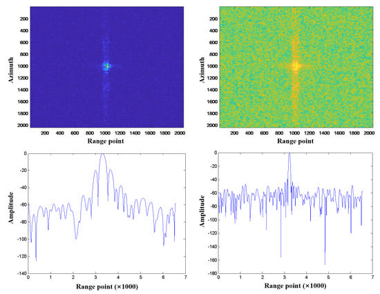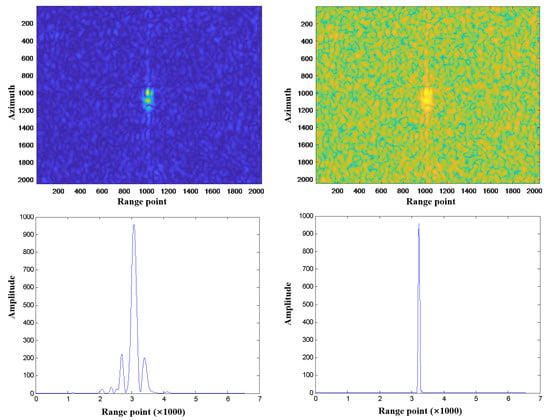In this way, the phase term in the two-dimensional frequency-domain representation of the signal is linearly related to the new range frequency , which is independent of the azimuth frequency . This means that the Stolt interpolation map completes the residual distance compression by removing the higher-order coupling terms and realizes the migration correction at each distance. Finally, the two-dimensional inverse Fourier transform is conducted to obtain a SAR image with good focusing effect.