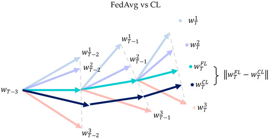 Based on Equations (21) and (24), the between FedAvg with balanced-MixUp denoted as can be written as Equation (26):