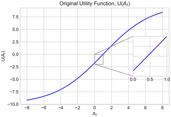 The original utility function can be approximated as a straight line when falls in the range [0, 1].