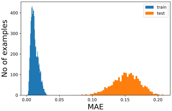 The figures show that it is not possible to discriminate the anomalous data with respect to the normal ones because the bell-shaped curves of the error distribution overlap completely. What could be desirable is shown in Figure 3, where the two sets of data (train and anomalous) are easy to distinguish. In Figure 4, it is possible to observe what typically happens when using this technique. It is common, in fact, that the autoencoder makes some mistakes on normal data and/or reconstructs some of the anomalous ones well, leading to some superimposition of the calculated MEA. In this case, the threshold would be chosen to optimize the results, analyzing the problem and understanding if it is more acceptable to categorize anomalous data as normal or the contrary. In Figure 5, it is possible to see our case, in which the superposition does not allow for distinguishing the two cases at all.