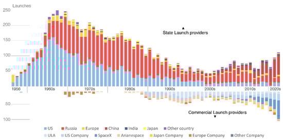 Orbital launches from 1956 to 2022 from the main operators. Inspired by [6].