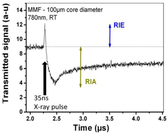 - Bisutti, J. Etude de la Transmission du Signal sous Irradiation Transitoire dans les Fibres Optiques. Ph.D. Thesis, Université Jean Monnet, Saint-Étienne, France, 2010. [Google Scholar]