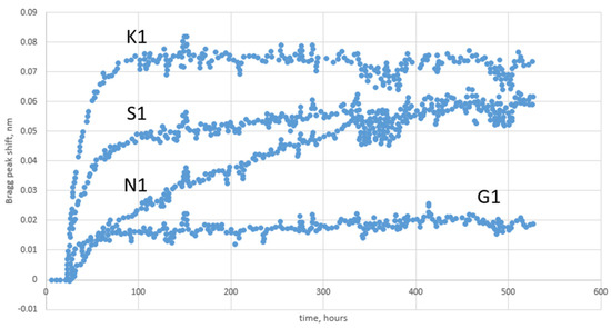 - Gusarov, A.I.; Berghmans, F.; Fernandez, A.F.; Deparis, O.; Defosse, Y.; Starodubov, D.; Decreton, M.; Megret, P.; Bondel, M. Behavior of Fibre Bragg Gratings under High Total Dose Gamma Radiation. IEEE Trans. Nucl. Sci. 2000, 47, 688–692. [Google Scholar] [CrossRef]