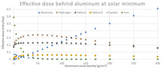 - Barthel, J.; Sarigul-Klijn, N. A Review of Radiation Shielding Needs and Concepts for Space Voyages beyond Earth’s Magnetic Influence. Prog. Aerosp. Sci. 2019, 110, 100553. [Google Scholar] [CrossRef]