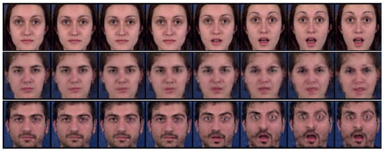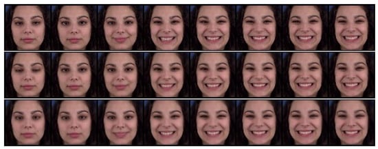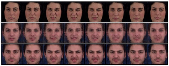 Example of reconstruction on the MUG dataset. The top, middle, and bottom rows denote the input video and the results using DSVAE and the proposed method, respectively.