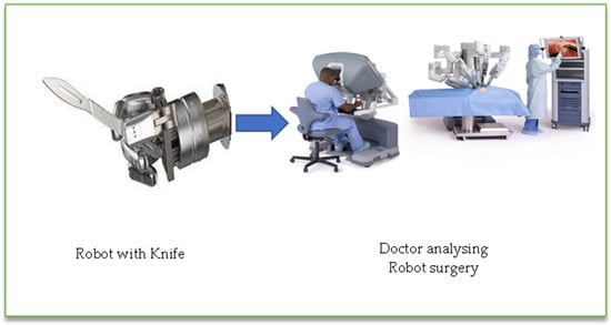 Robotic surgery care could benefit from 5G networks. 5G networks will be beneficial to video calls, gaming, and download speeds [31,32,33,34,35,36]. On the other hand, specialized surgeons anticipate a growth in global, robotic-assisted long-distance surgery. Telepresence and telesurgery both benefit from the benefits of a 5G connection. On the other hand, the promise of 5G goes beyond just increasing the speed of today’s technologies. Surgeons will be able to integrate medical devices and collect data in previously unimagined ways as a result of the greater volume of data that can be analyzed at rapid rates. For the first time, experts from all over the world could work together. It has the potential to reduce operating expenses while also increasing the quality of care for patients in rural areas in the long run [37,38,39,40,41]. Assistive and fully automated robotic surgery are the two main types of robotic surgery. Doctors use assistive equipment to make small incisions, assure proper placement of medical devices, and close up patients following surgery. Fully automated surgical equipment can perform end-to-end procedures without the need for human intervention. Work on completely autonomous surgical robots is now ongoing, according to the IEEE. In 2016, the Smart Tissue Autonomous Robot (STAR) was able to repair a pig’s intestine on its own, with far higher precision than a human surgeon [42]. Fujian Medical University, Huawei; China Unicom Fujian Branch Mengchao Hepatobiliary Hospital; and Suzhou Kangduo Robot Co., Ltd., conducted the world’s first 5G surgery animal trial [42]. The procedure takes about 60 min to complete, with very little downtime. There was no blood spilled during the procedure, and the surgical wounds were clean. After surgery, the experimental animals’ vital signs remained constant. The operation was able to reach this goal thanks to Huawei’s 5G net technology’s enormous bandwidth, low latency, and large connection capabilities. The 5G network handles the control connection, as well as the two-video links at both tops of the remote-control machine. “High-definition video has attained the same experience as a fiber-optic line based on 5G network control experience.” The surgeon gave a favorable endorsement. Remote diagnosis, remote care, and remote surgery will be gradually used as 5G medical association applications mature, effectively increasing the value of the lifetime of sick persons. Telerobotic spinal surgery using a 5G network was proposed by Tian et al. The goal of their research was to see if fifth-generation wireless networks spinal telerobotic surgery was effective and feasible in our first 12 patients [43]. They came to the conclusion that 5G telerobotic spinal surgery is both efficacious and practicable for the safe care of spinal ailments, and 5G remote robot-assisted spinal surgery is accurate and dependable. They also came to the conclusion that 5G-based telerobotic spinal surgery is accurate, safe, and dependable. Robotics in spine surgery is a newer technology that has a lot of potential in the future. Surgical precision with robotically inserted instruments appears to be high. The influence of robotics on radiation exposure, on the other hand, is unclear and appears to vary depending on approach and robot type. Fifth-generation (5G) network implementation is currently underway in numerous nations throughout the world. The development of innovative technology has allowed medical professionals to operate on cadavers, human patients, and animal models remotely and through telemedicine. To inform readers about the innovative technology, and viability, demonstrate its efficacy, and highlight potential advantages for cancer patients who need surgical interventions, the authors of the following article go into great detail about the history of robotic surgical systems, a summary of the internet and 5G networks, and the current scenario of remote procedures using the 5G network. Figure 4 shows how robots are involved in surgery [44].