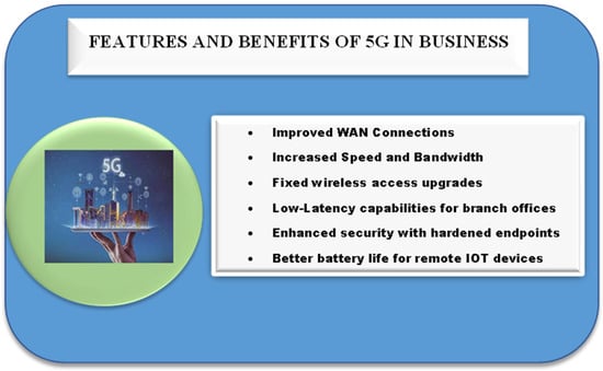 The internet of things (IoT) and 5G technologies are more than fair a new group of wireless technology. This is owed to the fact that 5G networks will expand the performance and reliability of these linked devices suggestively. 5G will drive origination across many industries and offer a platform for developing technologies such as the internet of things to become embedded into our economy and way of life. The keystone for solving the full capacity of the internet of things is 5G. Today, connectivity accounts for the great majority of operator IoT income, but in the next five years, revenue will also come from apps, services, and service enablement platforms [60,61,62,63,64,65,66,67,68,69]. Thales provides a variety of 5G solutions, IoT gateways, modem cards, ranging from Cinterion IoT Modules to 5G SIMs, and IoT projects that connect and secure next-generation devices while facilitating simple migration to new networks and structures. Beyond an increase in speed, 5G networks will be more reliable, leading to more reliable connections. For any internet of things, the importance of having a reliable and stable network state is especially important for connected devices such as cameras, locks, and other monitoring systems that depend on real-time updates. IoT devices will be dependent on the next-generation network’s extremely low latency, expanded coverage, and high-speed connectivity. In order for manufacturers to benefit from these developments, they must first participate in 5G-compatible products. 5G connects more devices at faster rates and practically eliminates lag, which is ideal for IoT-enabled devices. The term “mobile IoT” refers to cellular low-power wide-area systems that operate on licensed range bands. Both 3GPP narrowband IoT and long-term evolution machine-type communications are key components of the impending 5G era of smart communications. Today’s 5G networks can support mobile IoT solutions for smart logistics, smart utilities, and smart cities [70,71,72,73,74,75]. The earliest 5G applications and customer premises equipment included fixed wireless access, mobile computing, video broadcasting,