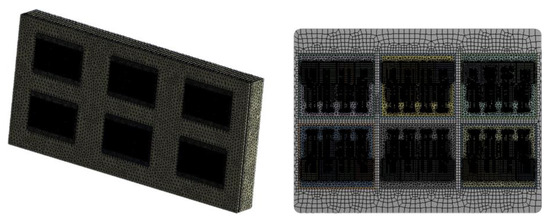 Considering that the traction converter contains six IGBT modules and a heat-sink, the six IGBT modules are placed evenly on the heat-sink in this paper, and the specific mesh division of the model is shown in Figure 3.