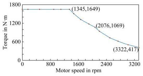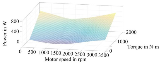 Combined with the electric–thermal simulation model of the traction converter established in this paper and the traction characteristic curve of urban rail vehicles shown in Figure 4, the power loss of the IGBT and the FWD under different torque and speed conditions could be simulated, and the power loss data under different working conditions can be obtained.