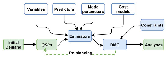 - Hörl, S.; Balać, M.; Axhausen, K.W. Pairing discrete mode choice models and agent-based transport simulation with MATSim. In Proceedings of the TRB Annual Meeting; Transportation Research Board: Washington, DC, USA, 2019. [Google Scholar]
